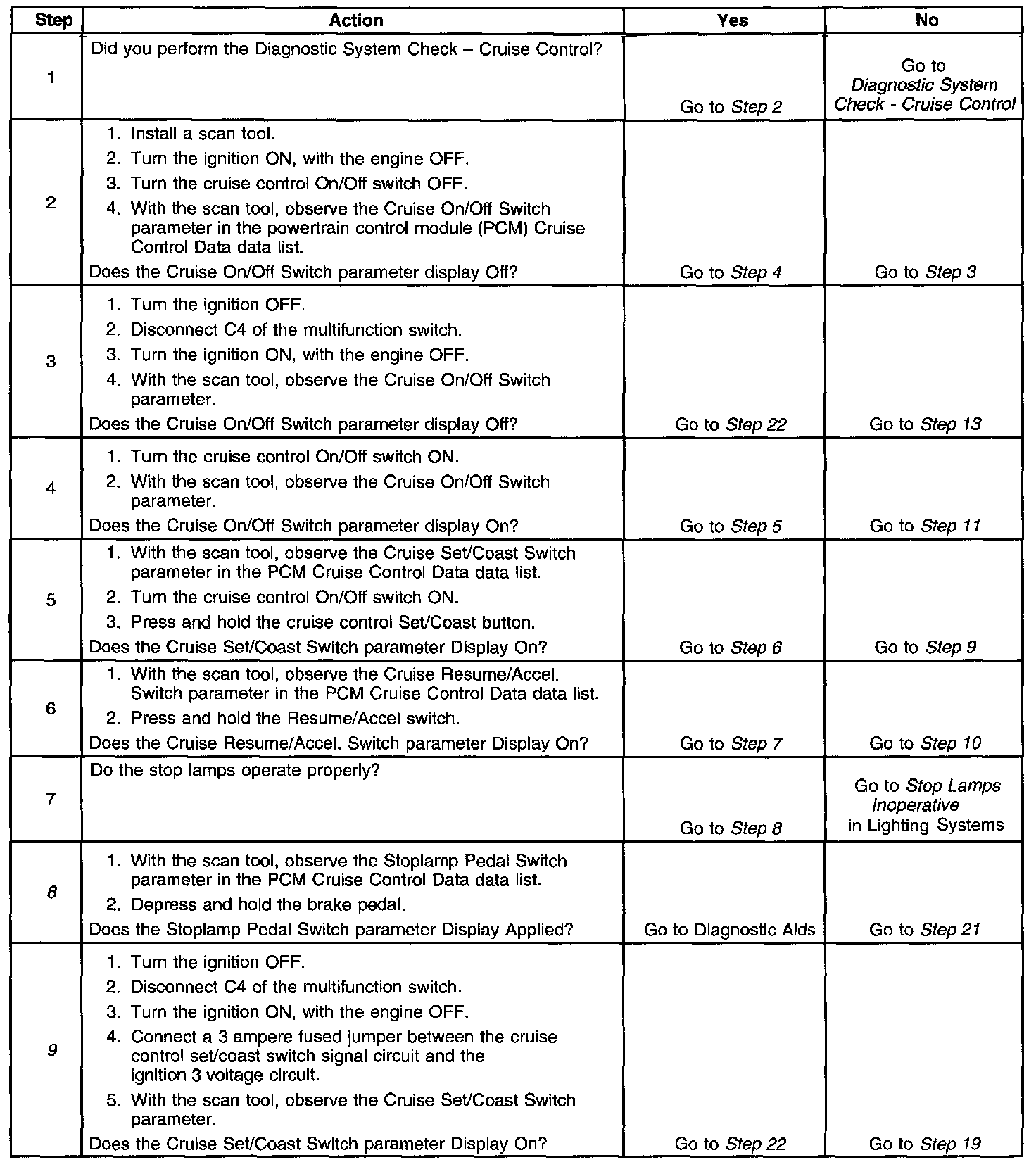 CRUISE CONTROL INOPERATIVE/MALFUNCTIONINGDIAGNOSTIC AIDS