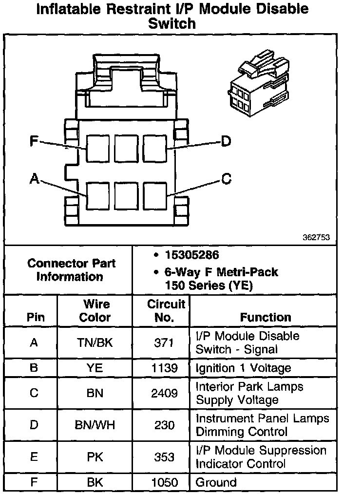 Inflatable Restraint Instrument Panel Module Disable Switch: