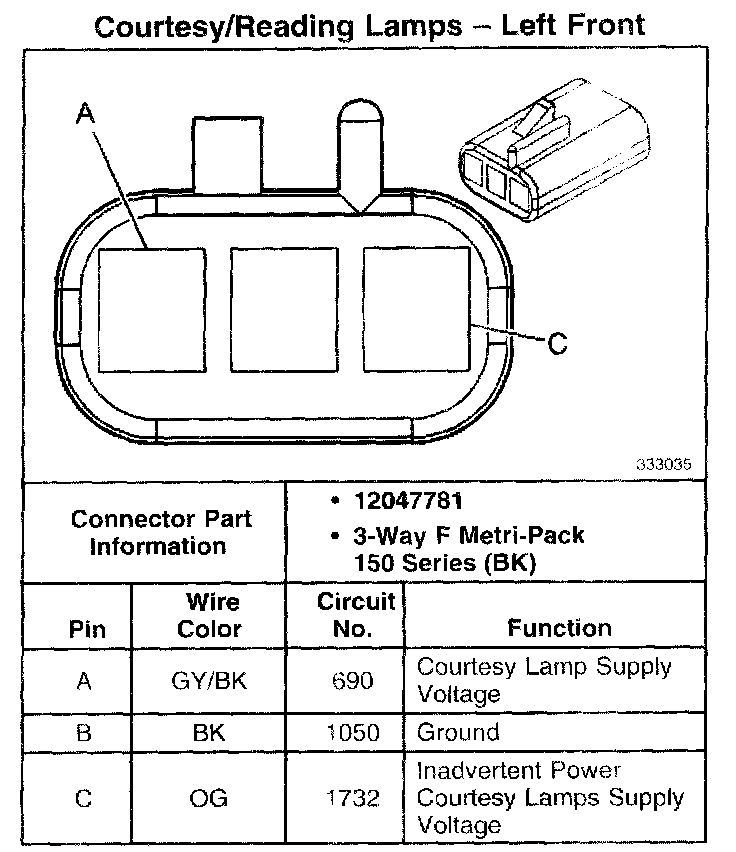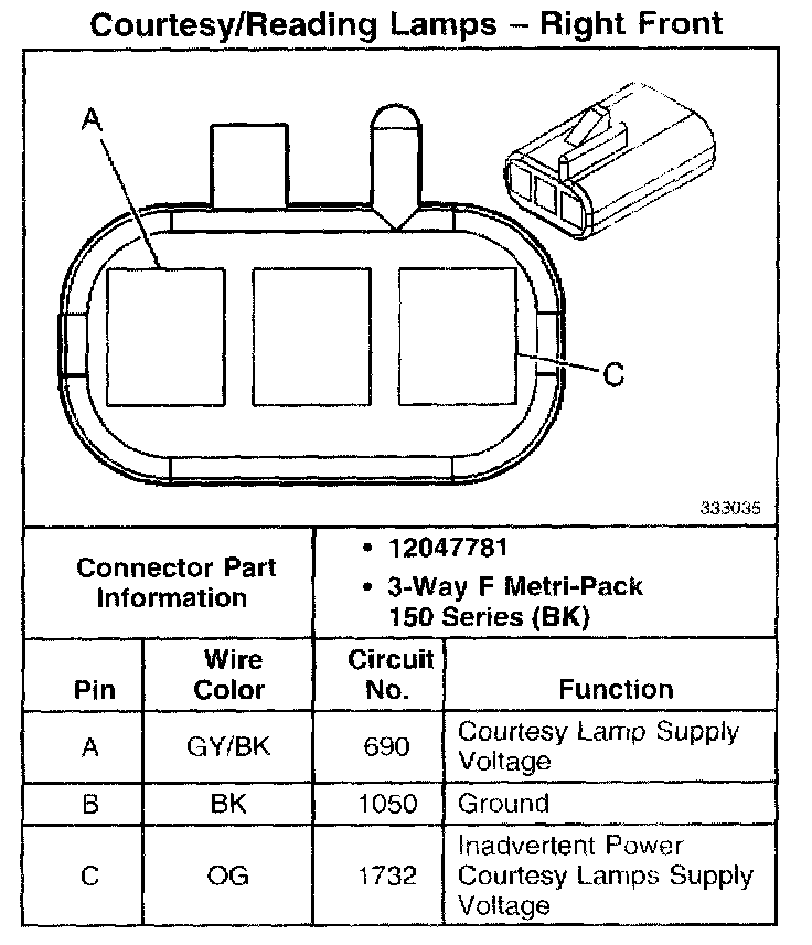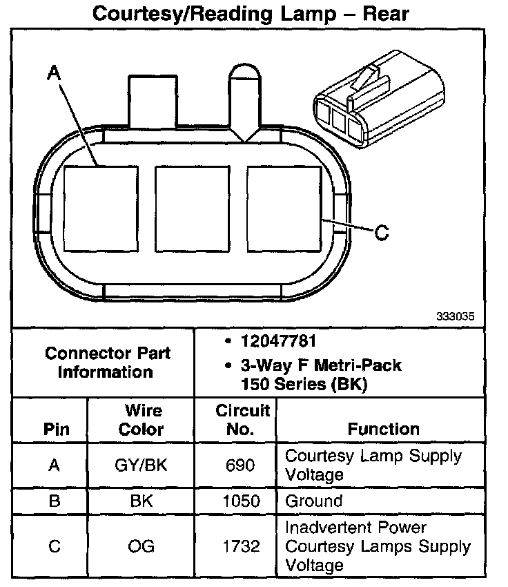 Courtesy/Reading Lamp - Rear:
