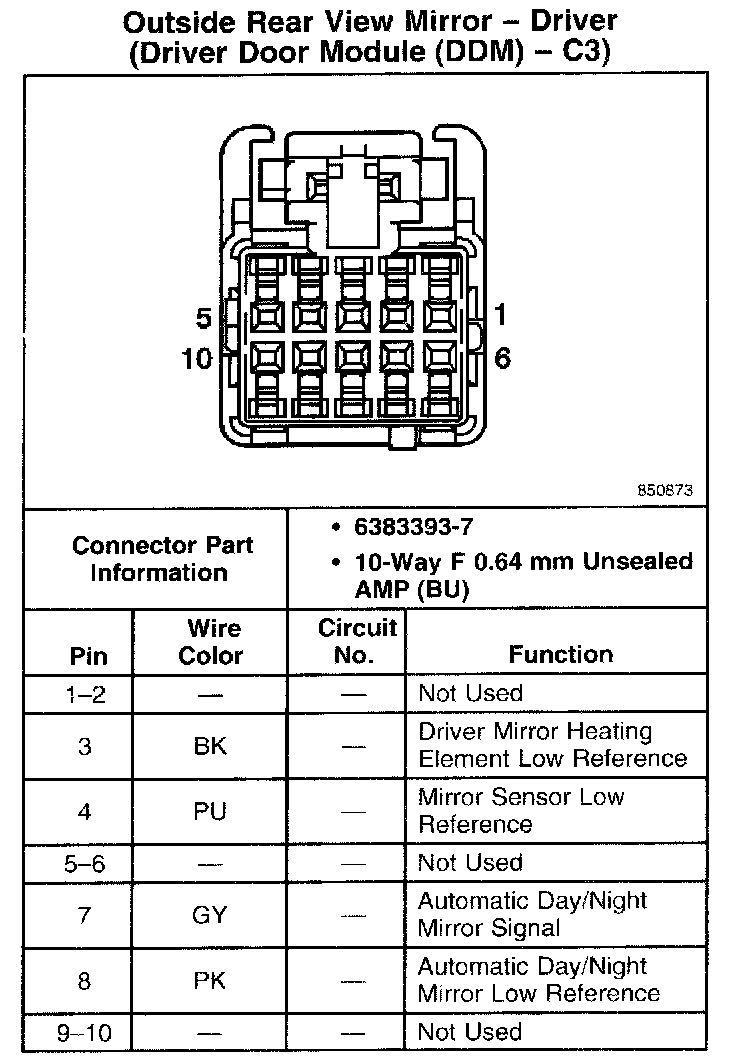 Outside Rear View Mirror - Driver (Driver Door Module (DDM) - C3):