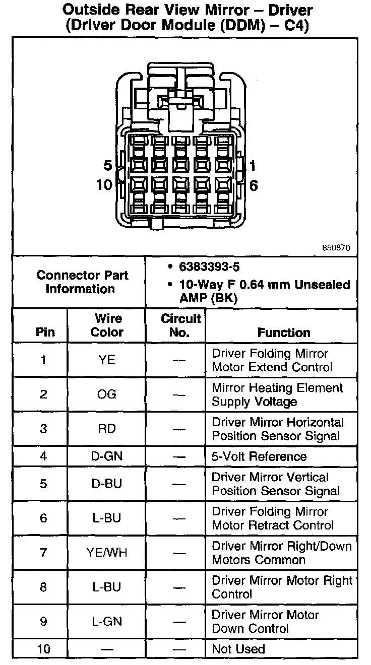 Outside Rear View Mirror - Driver (Driver Door Module (DDM) - C4):