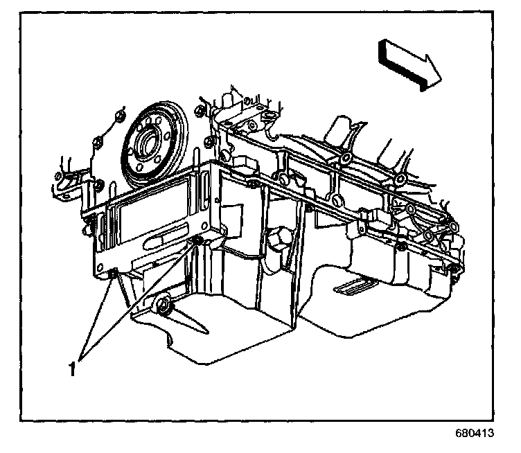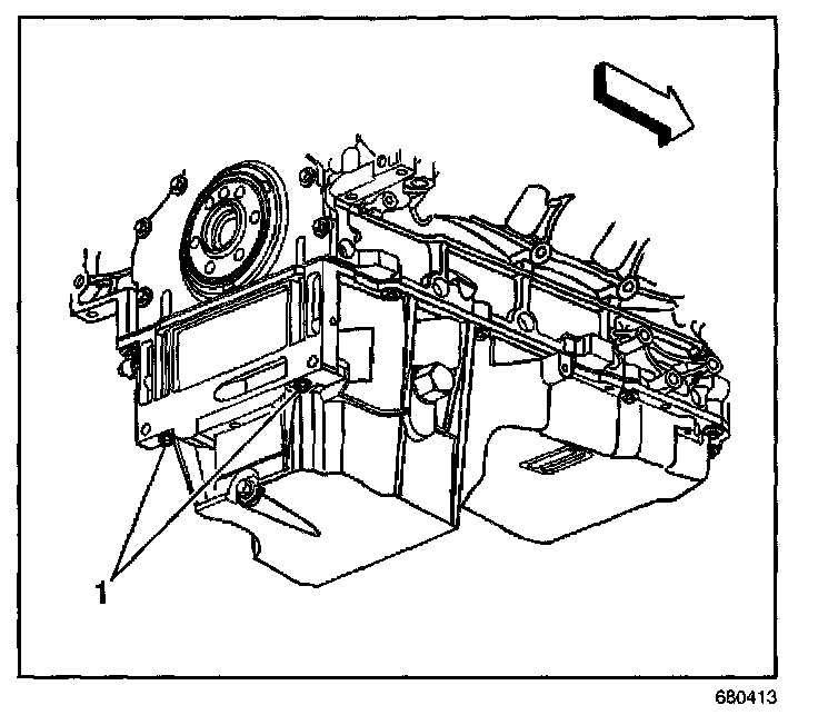 4. Install the oil pan-to-rear cover bolts (1) until snug. Do not overtighten.