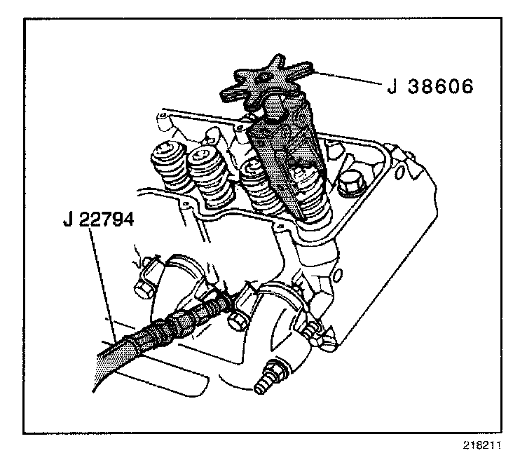8. Apply compressed air to J 22794 in order to hold the valves in place.