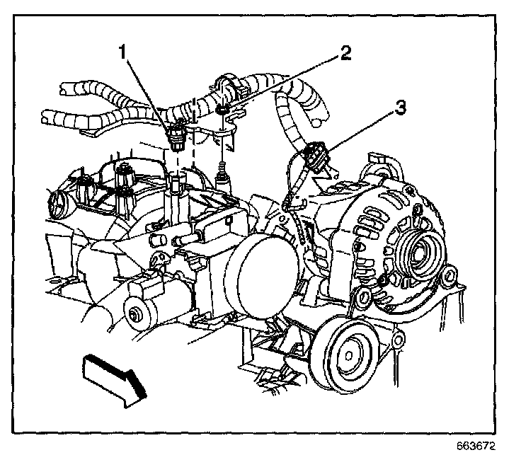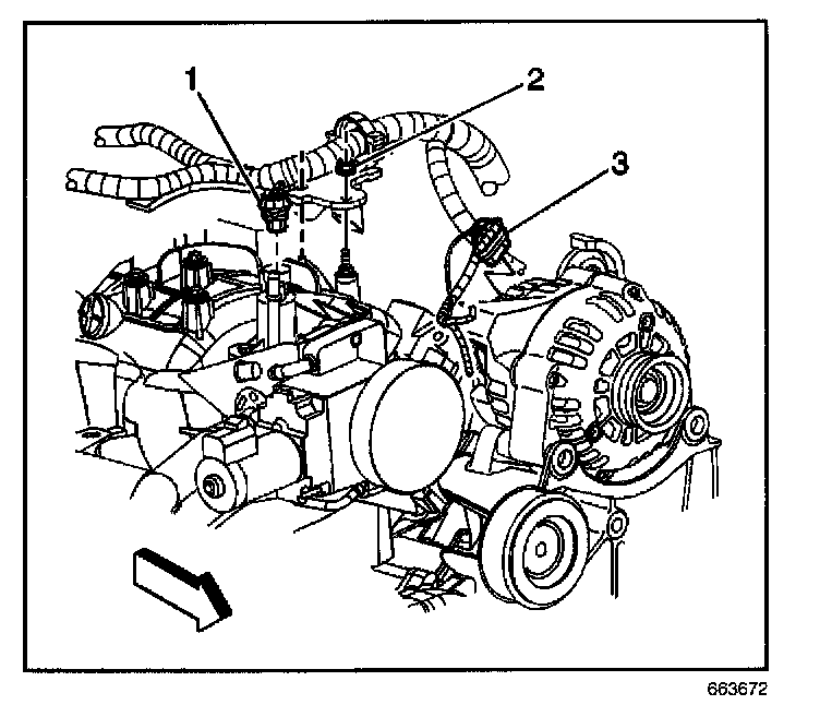 NOTE: Use care while moving the engine assembly in order to avoid breaking the MAP sensor locating tabs. Broken MAP sensor tabs may result in decreased engine performance.