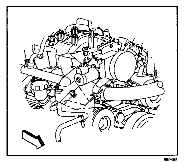 7. Reposition the radiator outlet hose clamp at the water pump.
