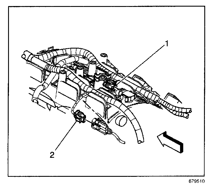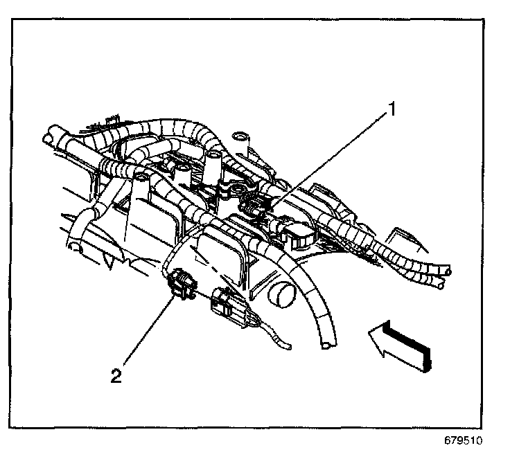 - Remove the EVAP tube end (2) from the solenoid (1).