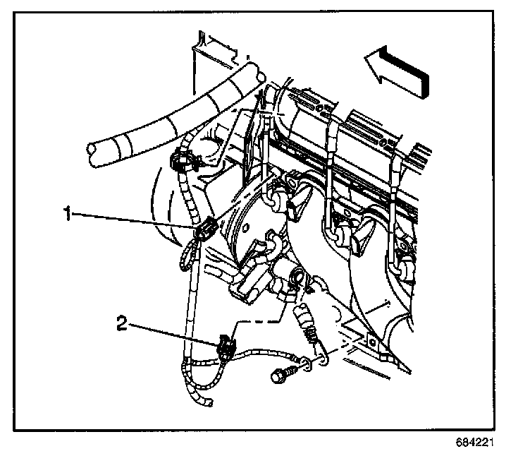 19. Disconnect the manifold absolute pressure (MAP) sensor (1) and knock sensor (2) electrical connectors.