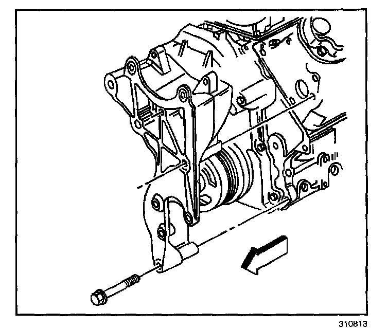 28. Install the rear power steering pump-to-engine block bolt until snug.