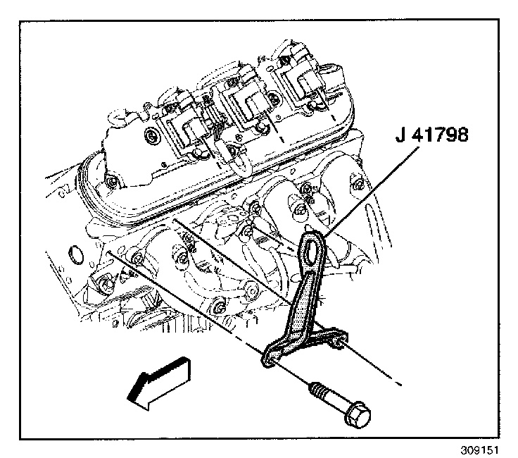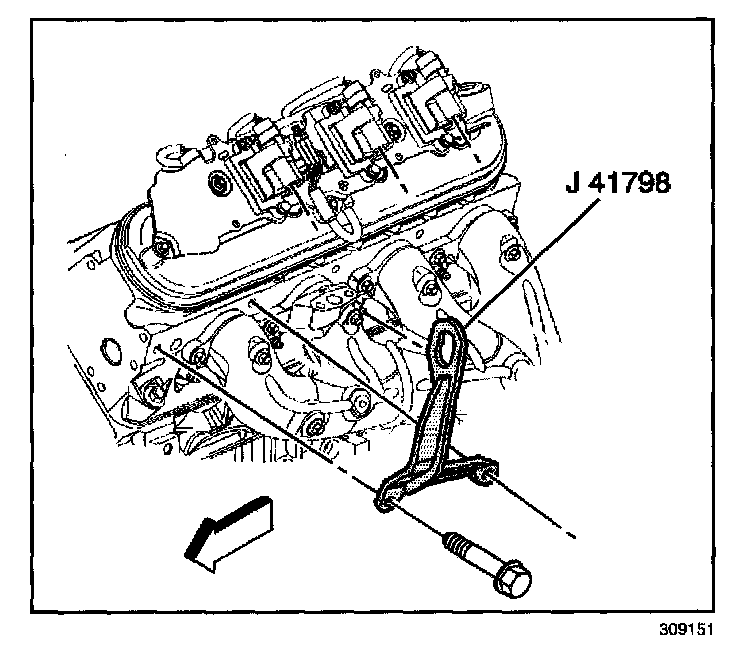 41. Remove the ignition coil, as required for the proper fit of the J 41798 before lifting the engine.
