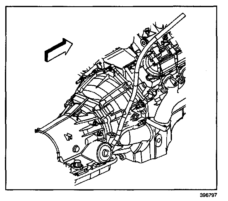 51. If equipped with the 4L60-E automatic transmission, remove the transmission bolt and stud on the right side.