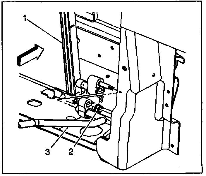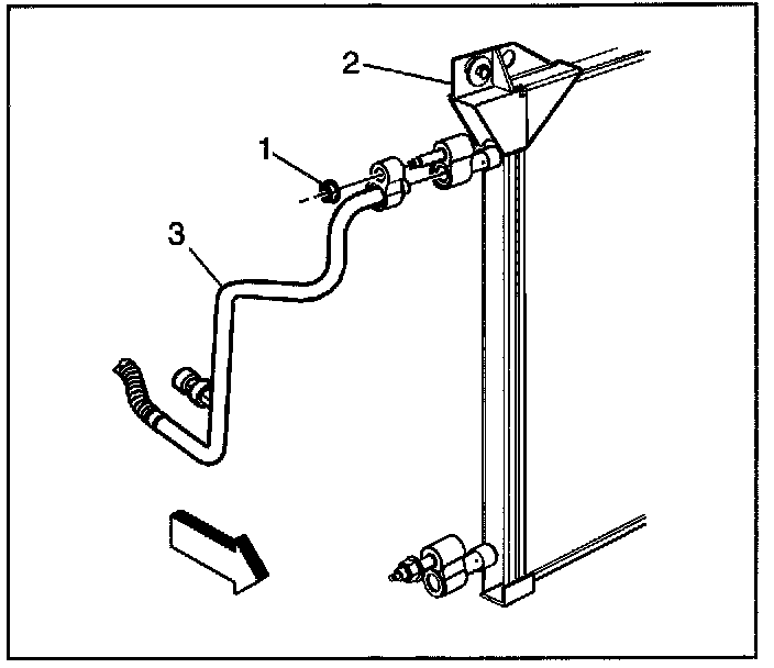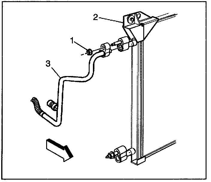 7. Remove the compressor discharge hose assembly (3) from the condenser (2).