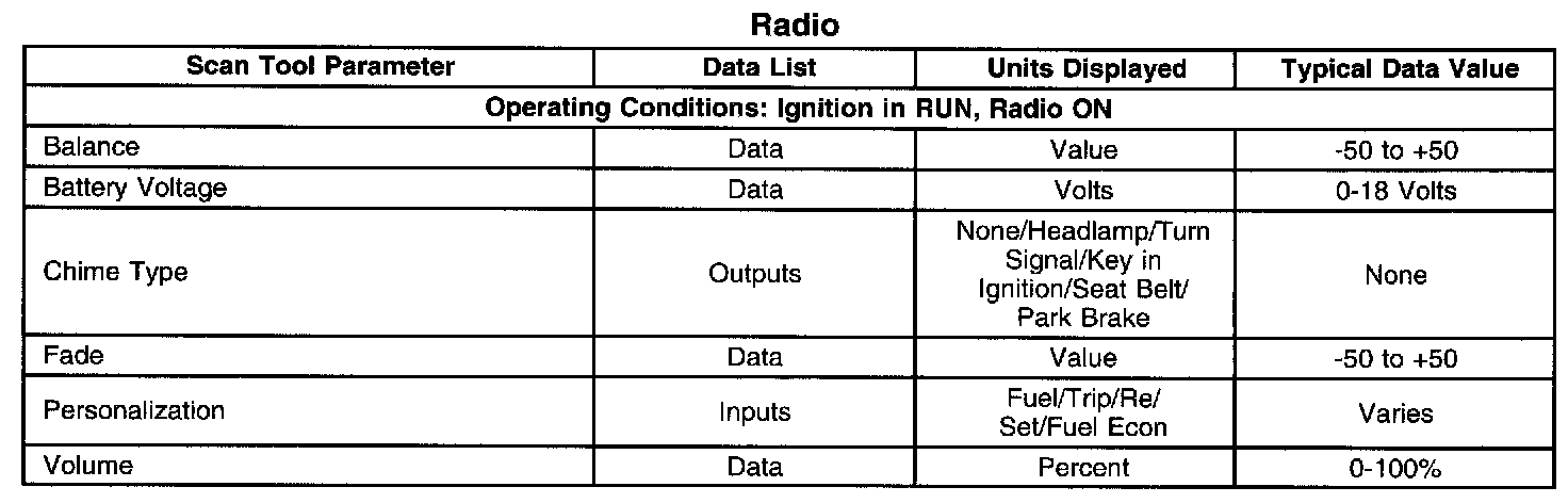 Scan Tool Data List - Radio: