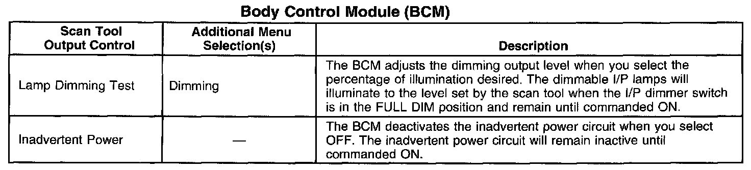 Scan Tool Output Controls - Body Control Module (BCM) Part 2: