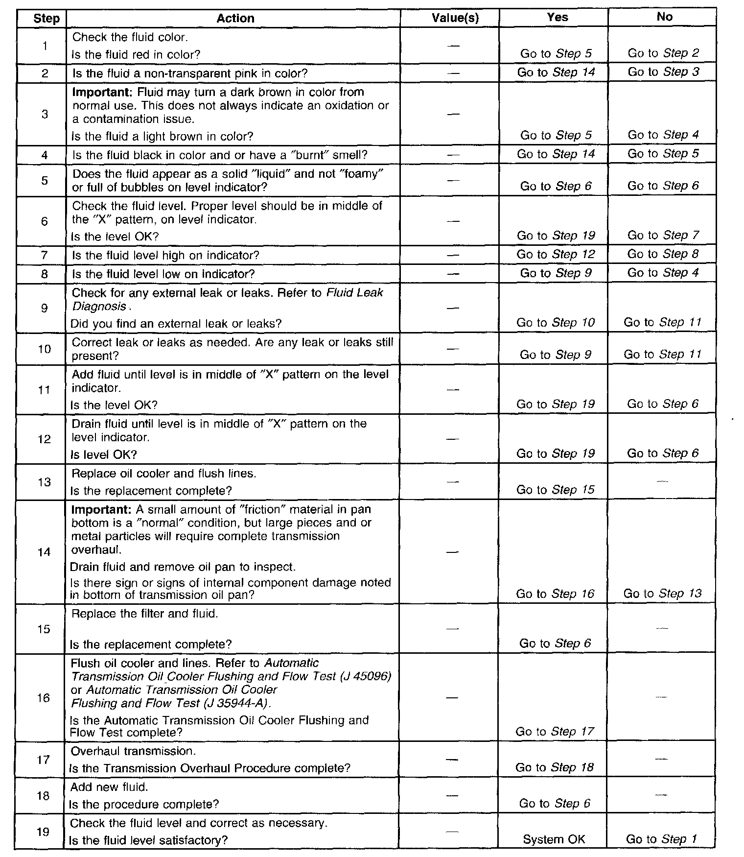 TRANSMISSION FLUID CHECKING PROCEDURESteps 1-19: