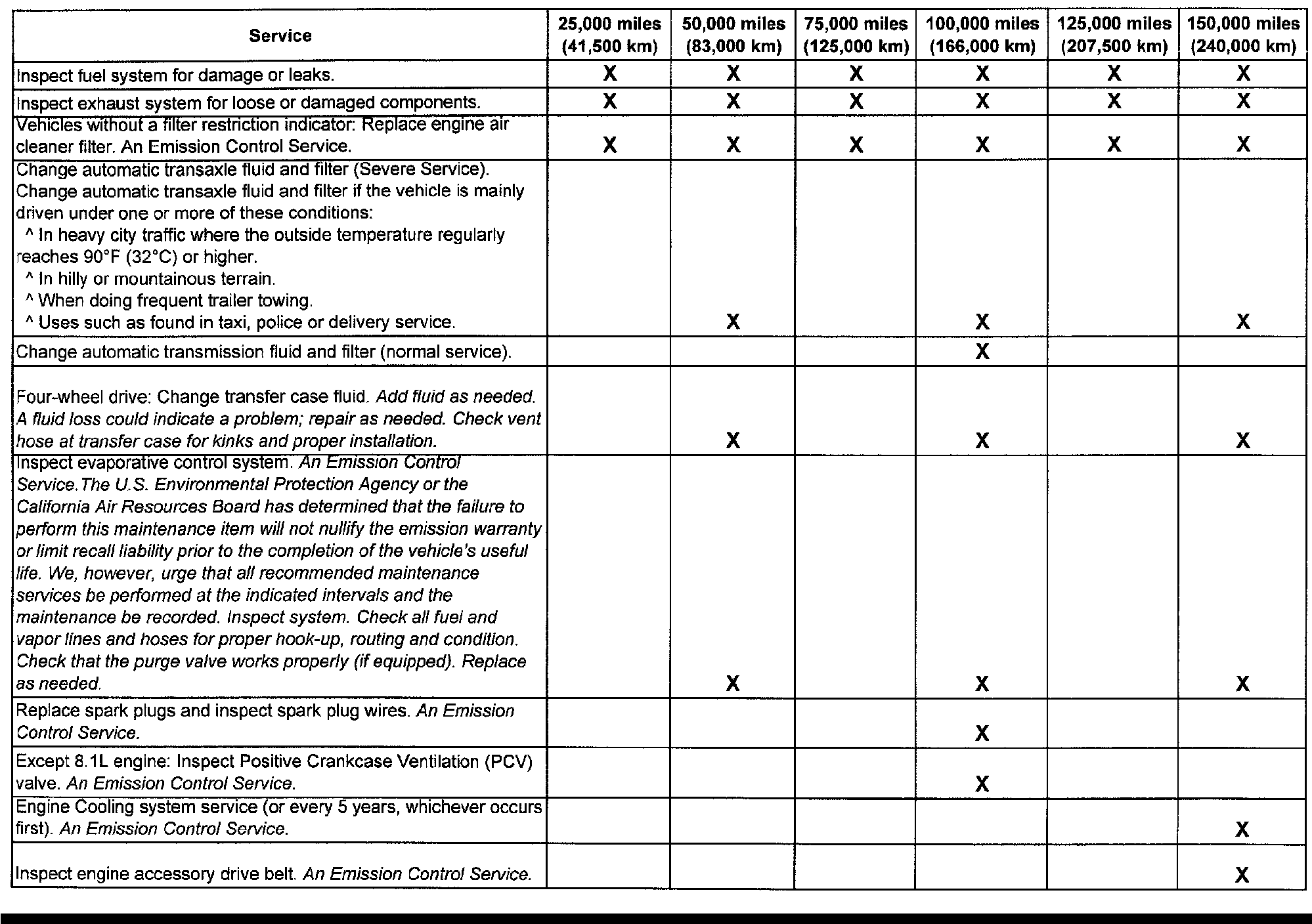 service (I or II) after the indicated miles (kilometers) shown for each item.