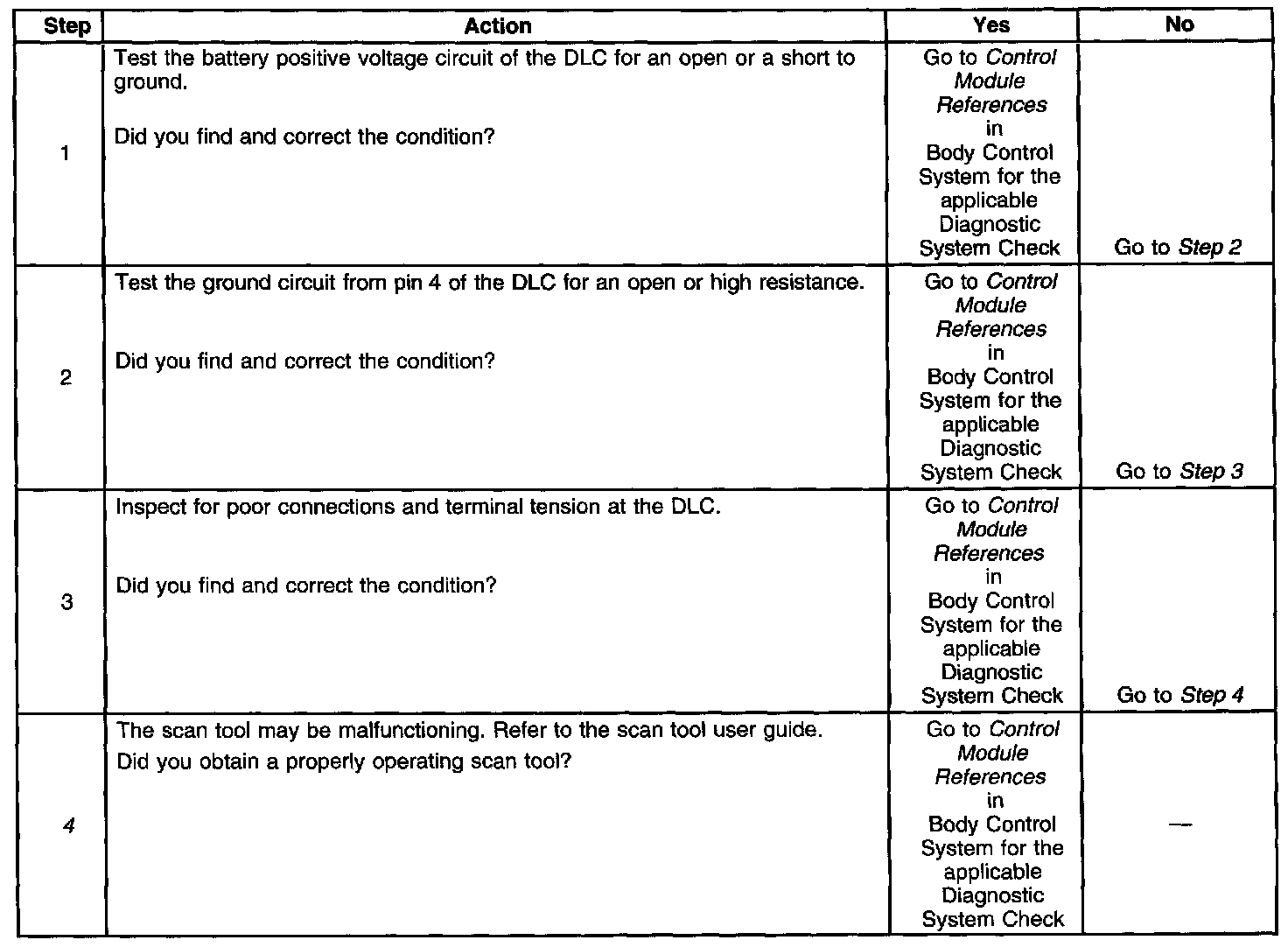 4. If the battery positive voltage and ground circuits of the DLC are functioning properly. The malfunction must be due to the scan tool.
