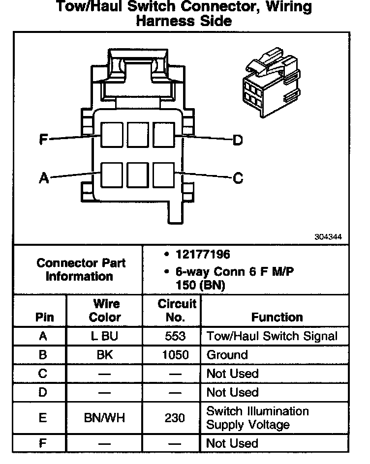 Tow/Haul Switch Connector, Wiring Harness Side:
