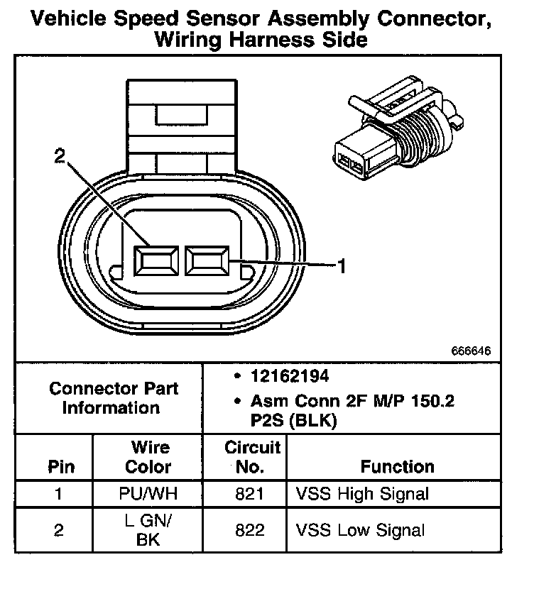 Vehicle Speed Sensor Assembly Connector, Wiring Harness Side: