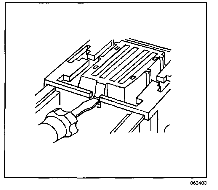 5. If the connector has a nose piece, use a small flat-bladed tool to remove the nose piece by inserting the blade into the slot on the front of the connector and prying up on the nose piece.
