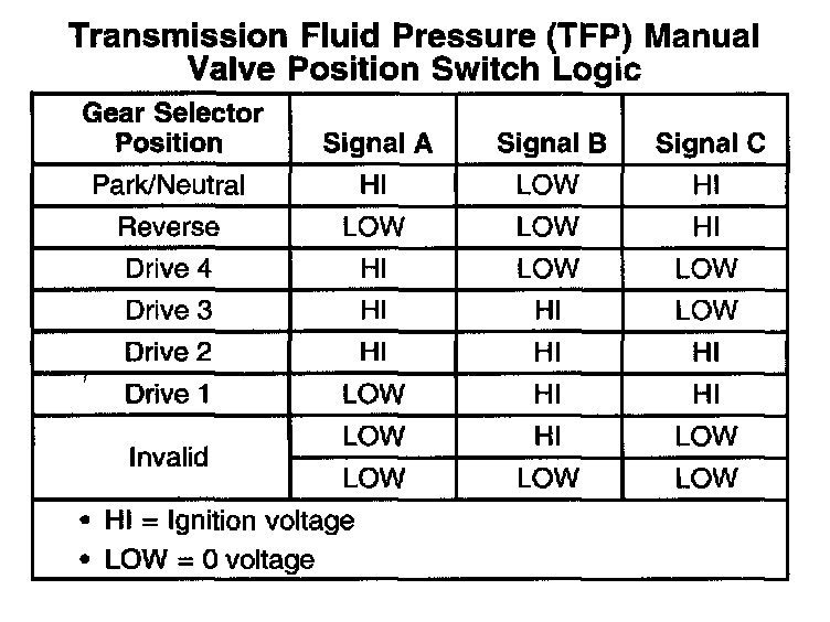 Transmission Fluid Pressure (TFP) Manual Valve Position Switch Logic