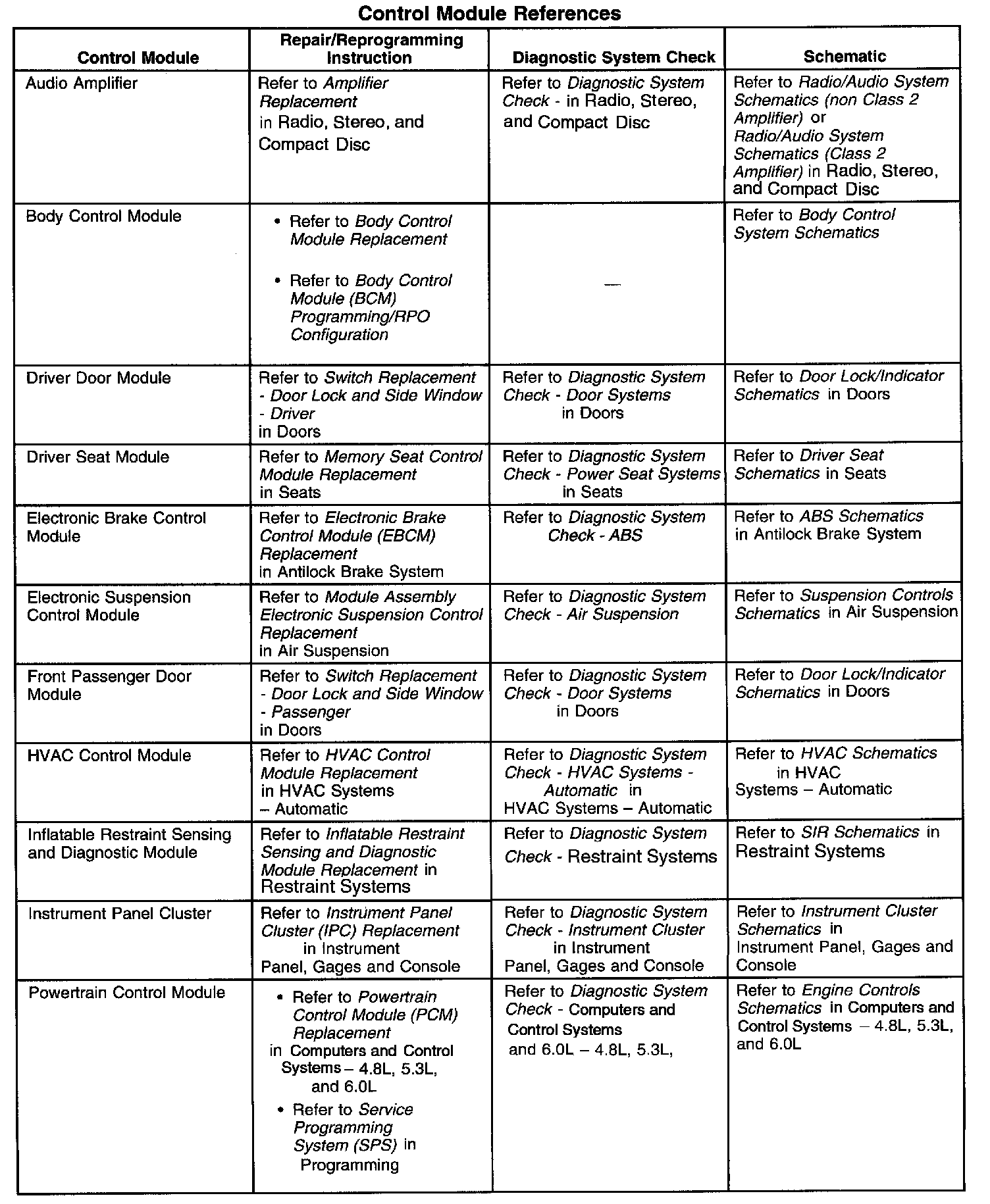 Control Module References