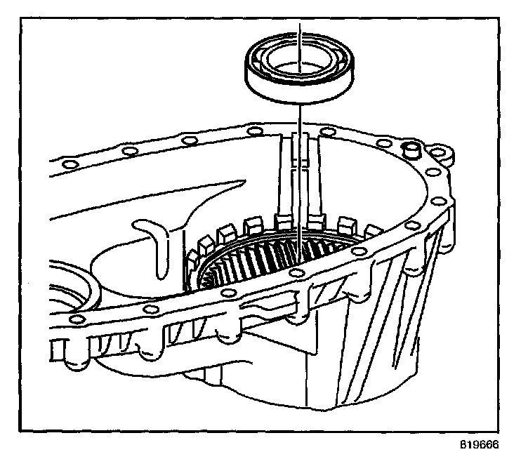 10. Install the front bearing for the front output shaft in the front case half.