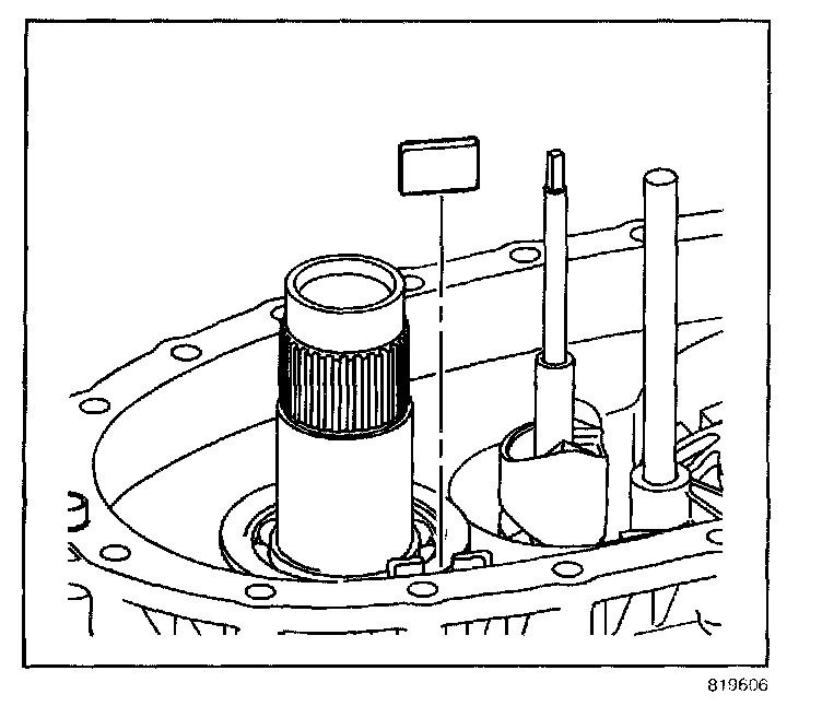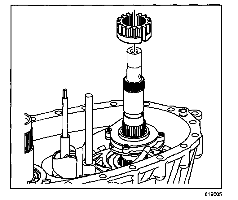 - Turn the mainshaft to align the slot on the inner lockup hub with the large tooth area on the lockup shift assembly hub.