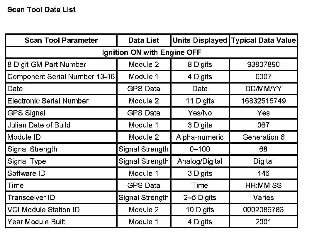 Scan Tool Data List: