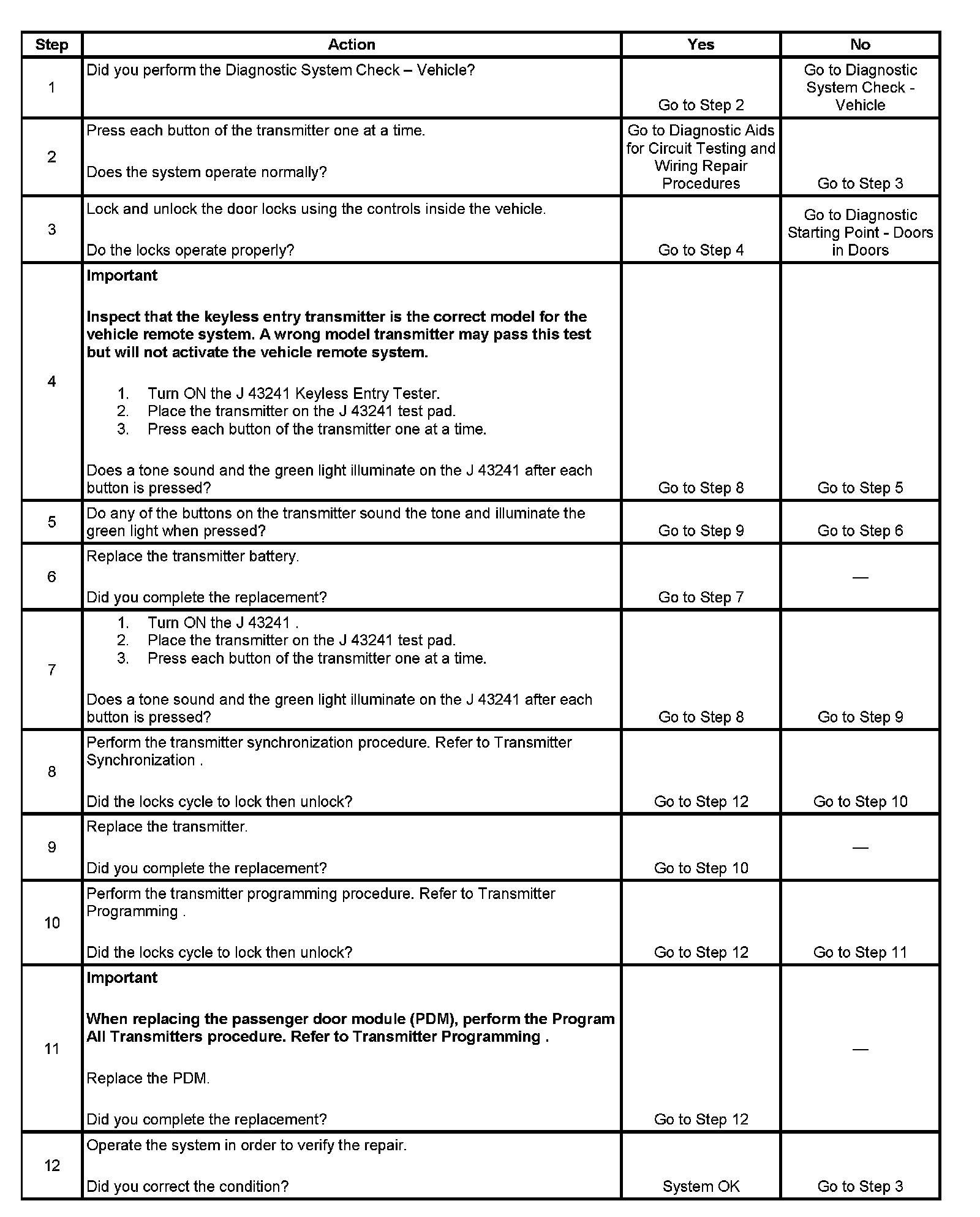 Keyless Entry System Inoperative