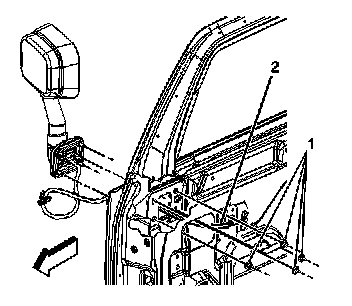 4. Remove the fasteners (1) retaining the mirror to the door.