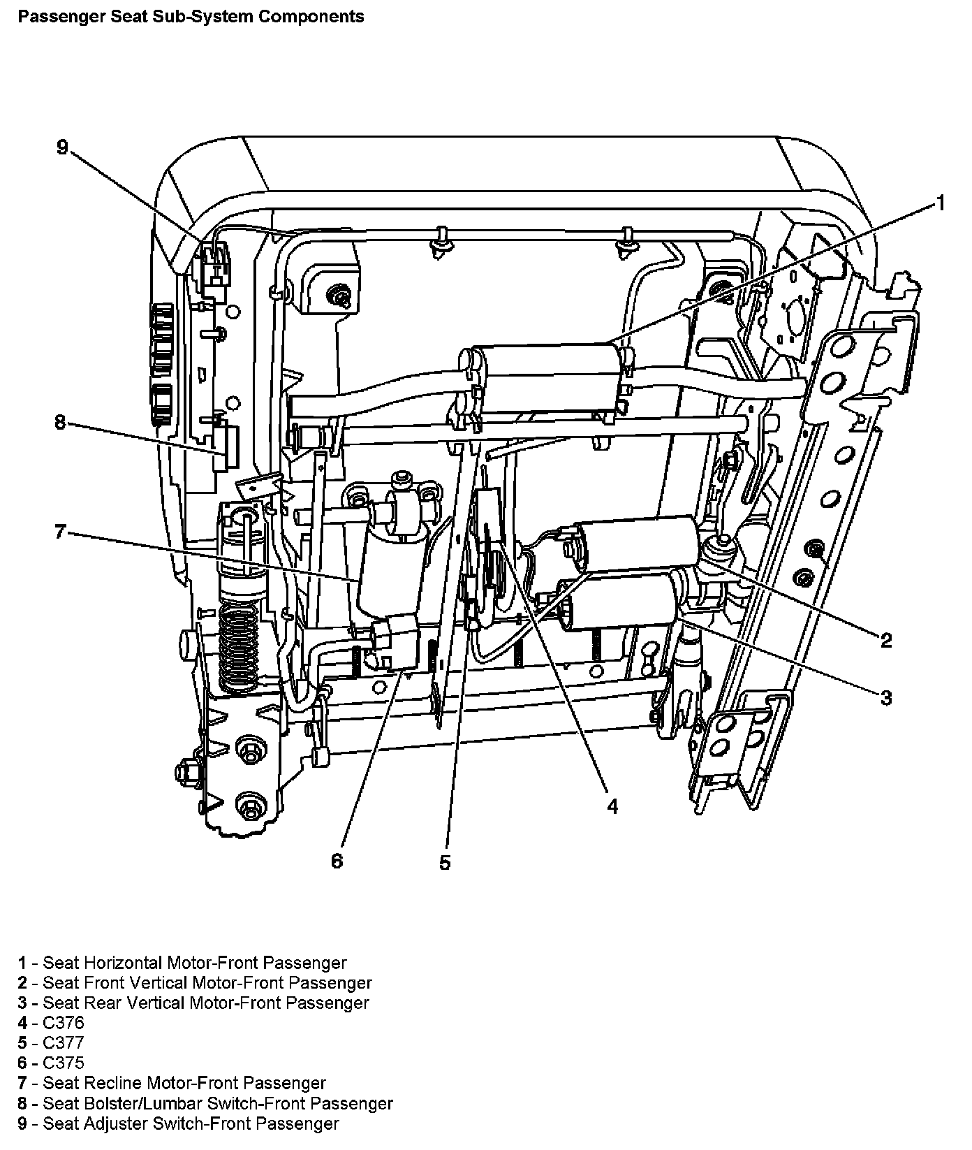 Driver Seat Sub-System Components:
