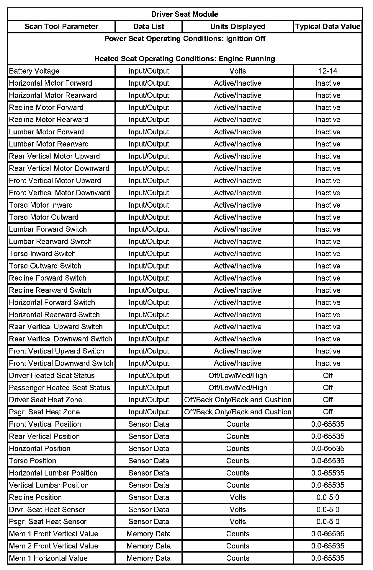 Scan Tool Data List