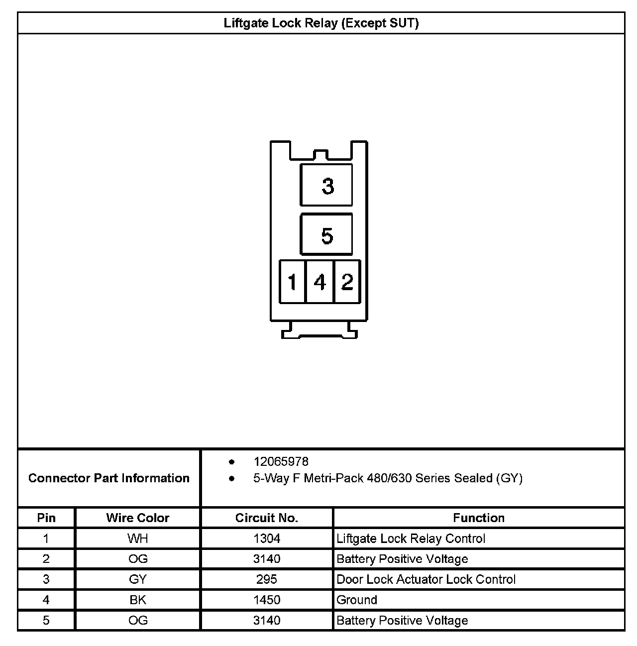 Liftgate Lock Relay (Except SUT):
