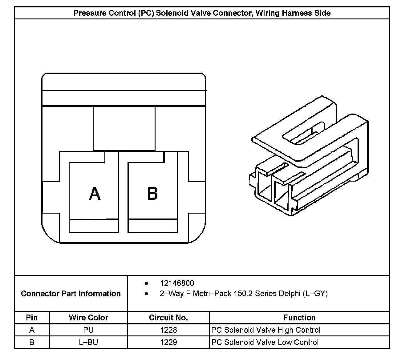 Pressure Control Solenoid Valve Connector, Wiring Harness Side: