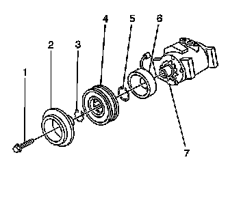 13. Remove the clutch coil (6) from the A/C compressor (7).