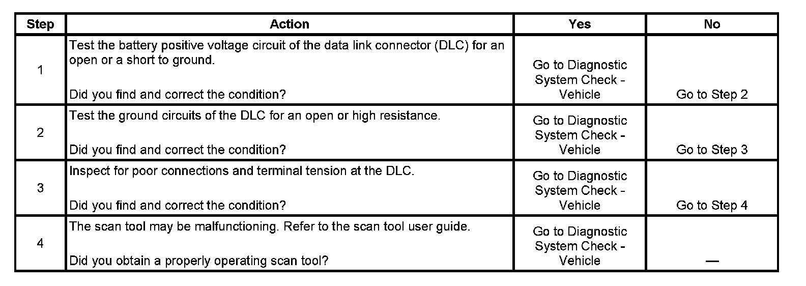 4. If the battery positive voltage and ground circuits of the DLC are functioning properly, the malfunction must be due to the scan tool.