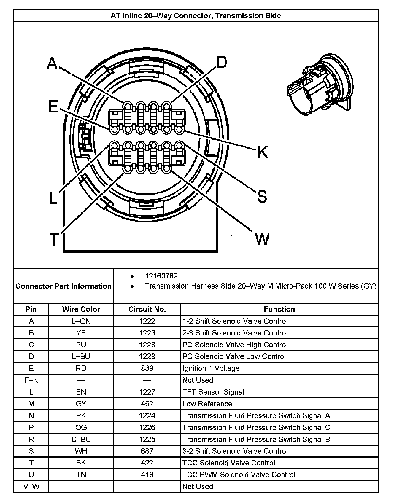 Automatic Transmission Inline 20-Way Connector: