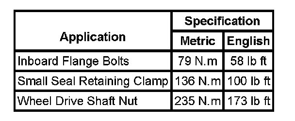 Fastener Tightening Specifications: