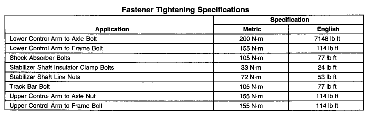 Rear Shock Absorbers torque to 115 Nm (85 lb ft)