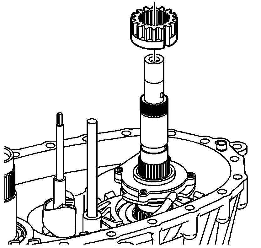 37. Notice: In order to prevent component damage, properly remove and install the shift detent lever shaft assembly. When removing or installing the shift detent lever shaft assembly, keep the shaft straight and do not tilt. Tilting the shift detent lever shaft assembly in the transfer case housing will break the tip on the end of the shaft.