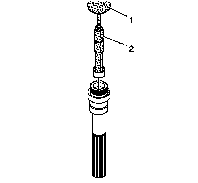 59. Using the J 2619-01 (1) and the J 45548 (2), remove the mainshaft rear support bushing from the rear output shaft.