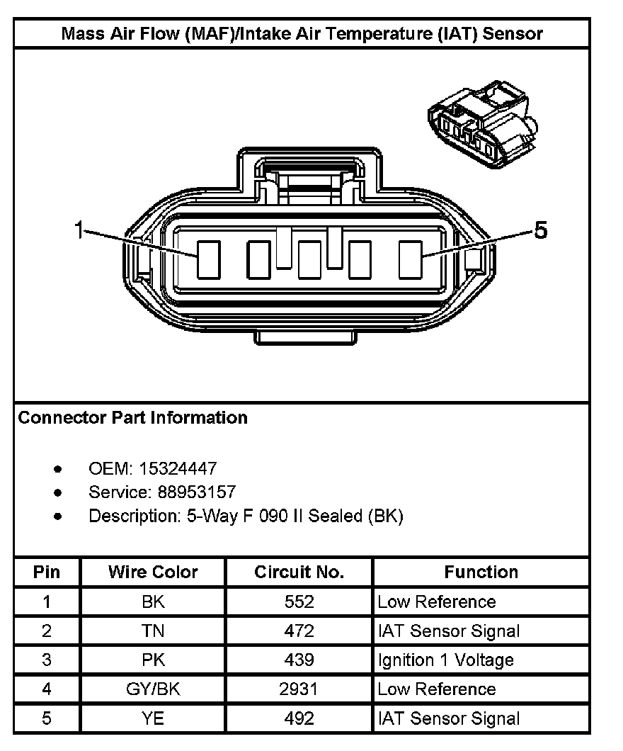 Mass Air Flow (MAF)/Intake Air Temperature (IAT) Sensor: