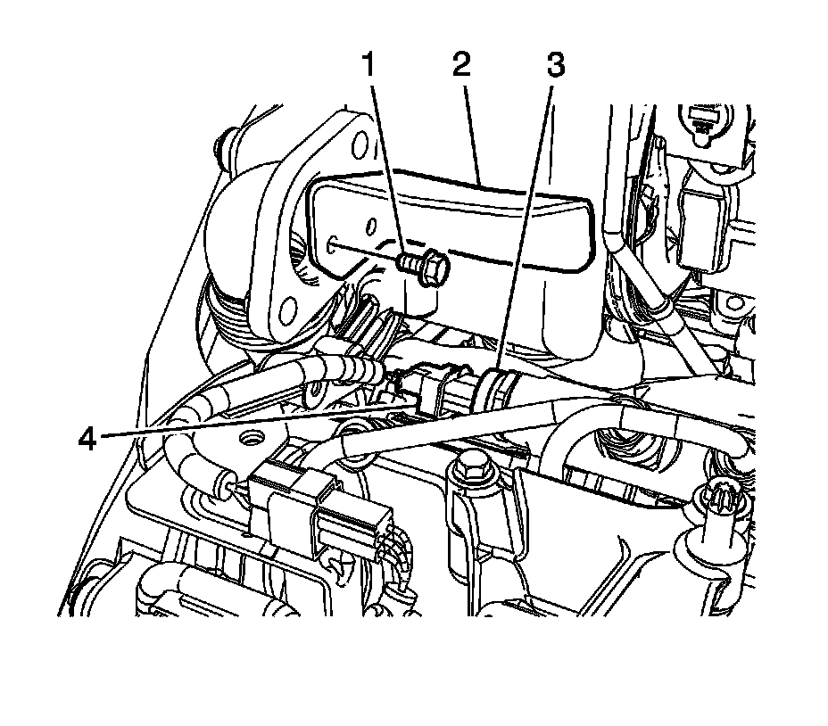 3. Install the EGR cooler heat protector (2) and bolt (1).