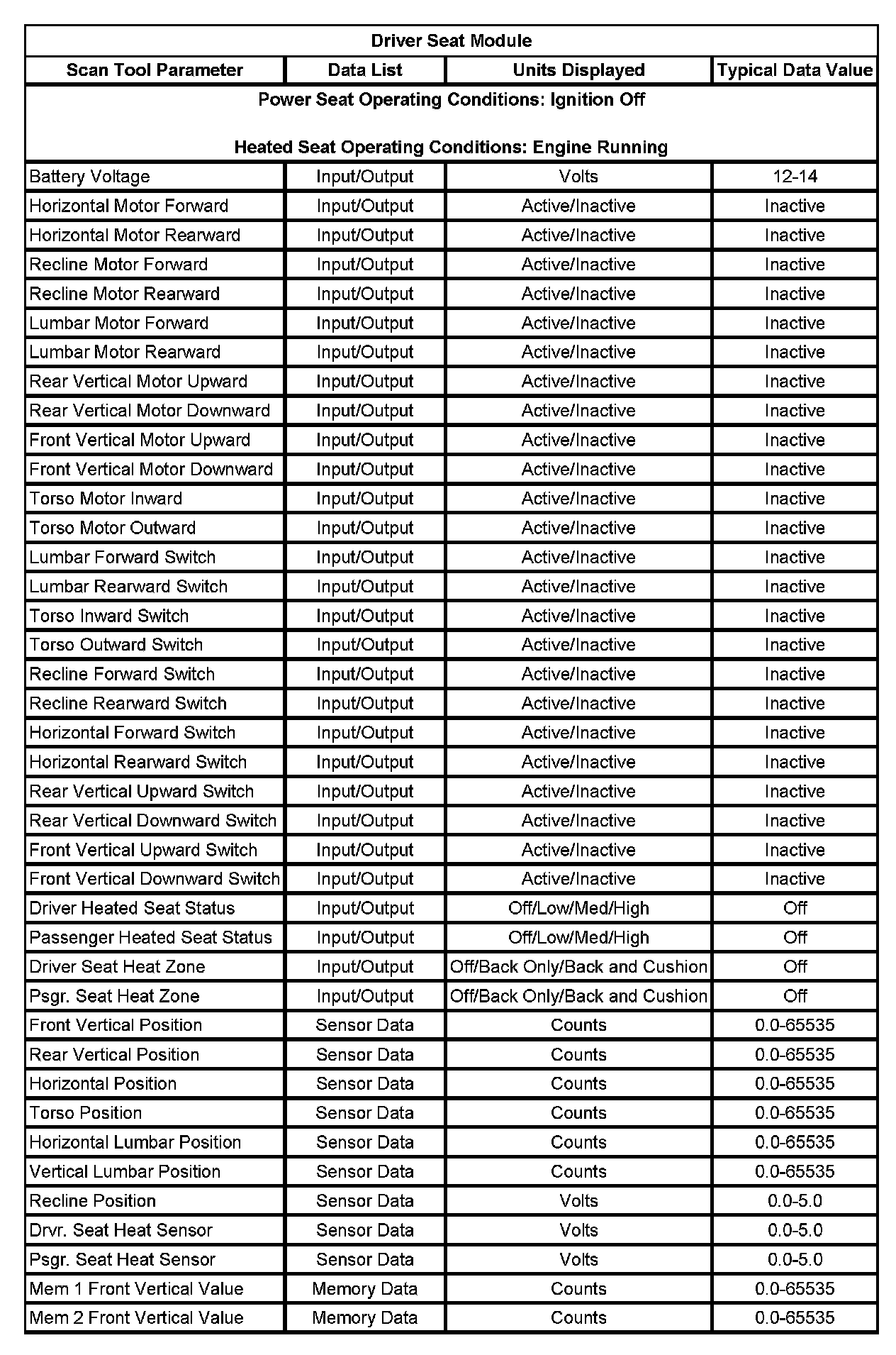 Scan Tool Data List