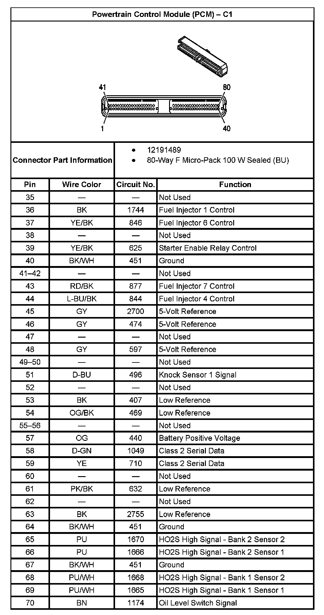 Powertrain Control Module (PCM) - C1 (Part 2):