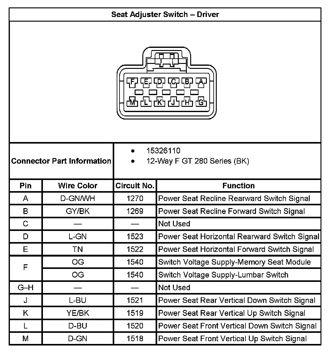 Seat Adjuster Switch - Driver: