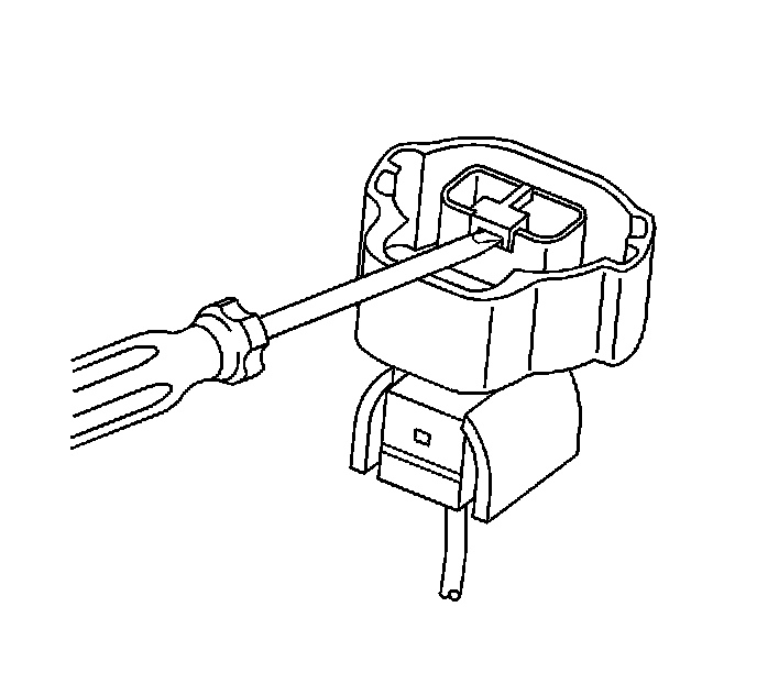 6. Gently pry the plastic terminal retainer down and carefully pull the terminal out of the connector. Always remember never use force when pulling a terminal out of a connector. If the terminal is difficult to remove, repeat the entire procedure.