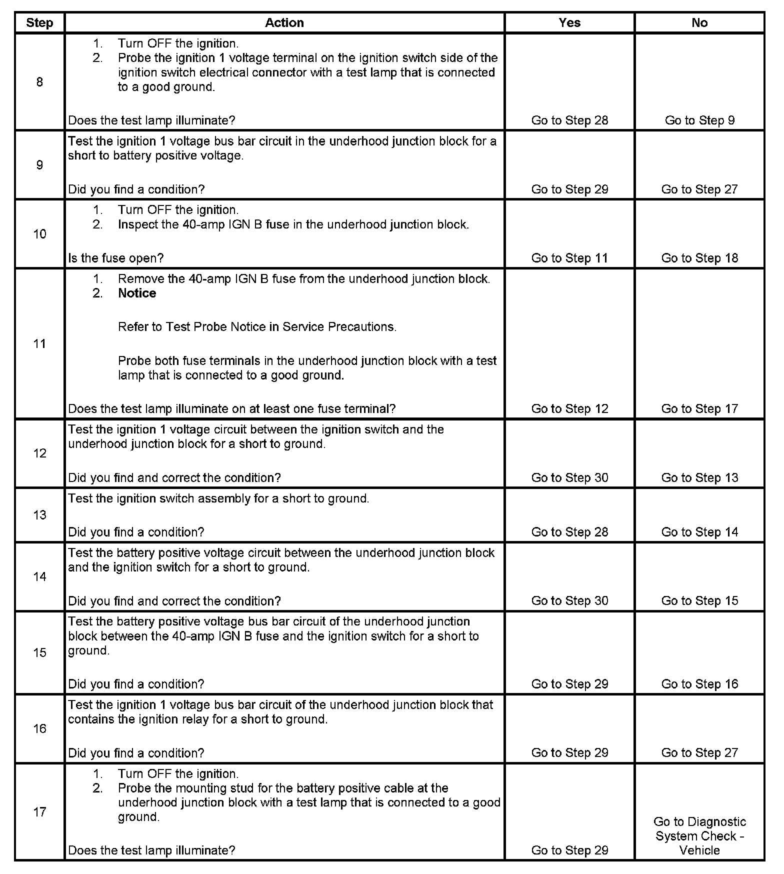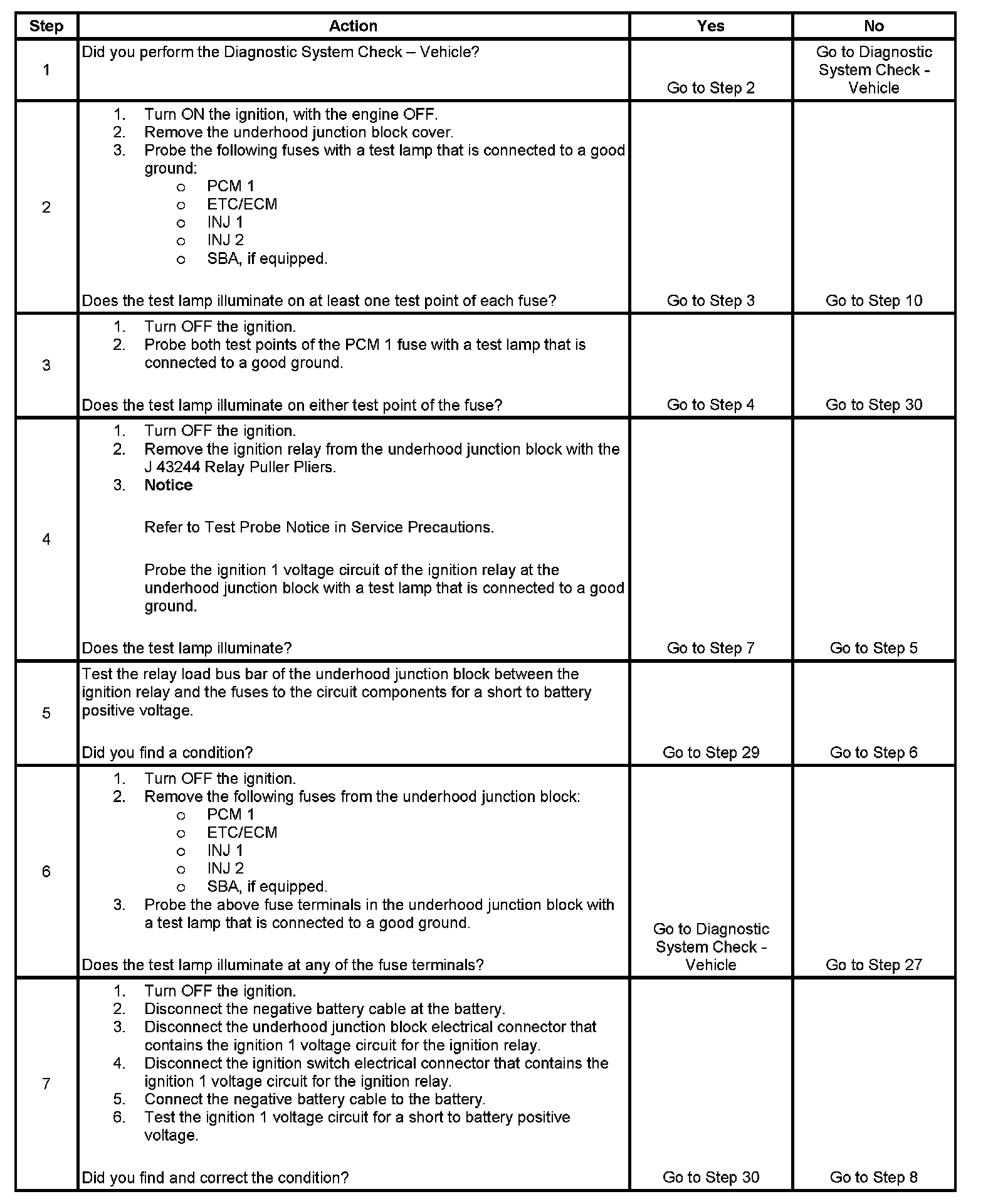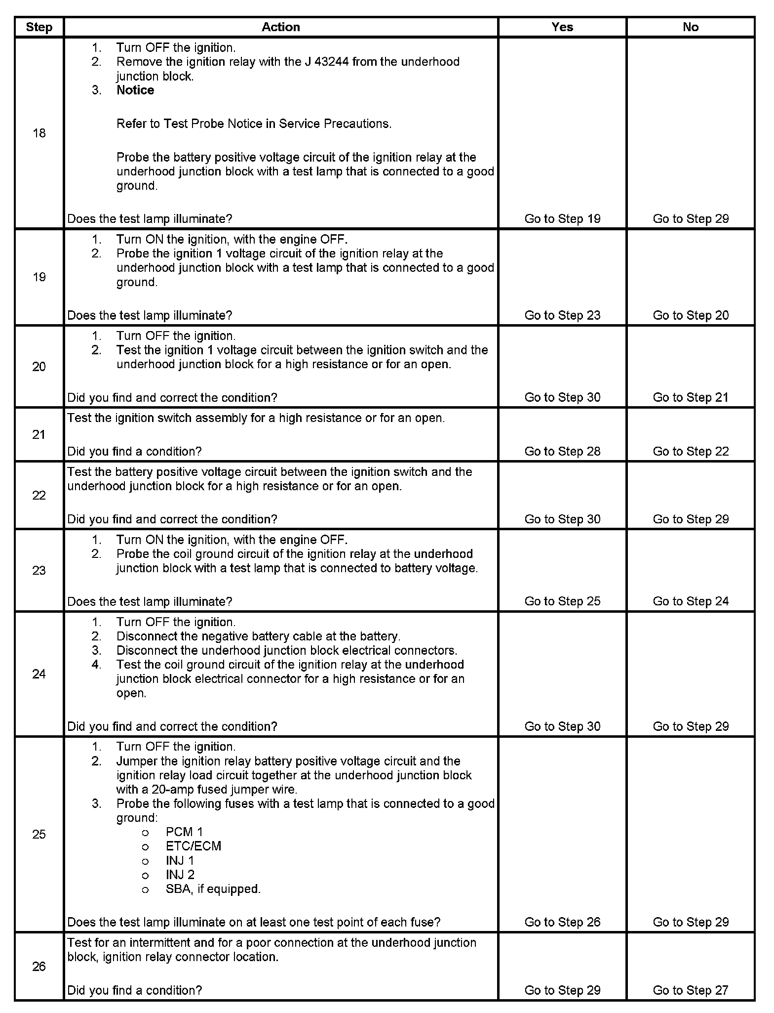 The ignition relay table assumes that the vehicle battery is fully charged. Refer to Battery Inspection/Test (Non-HP2) in Starting and Charging. Component Tests and General Diagnostics