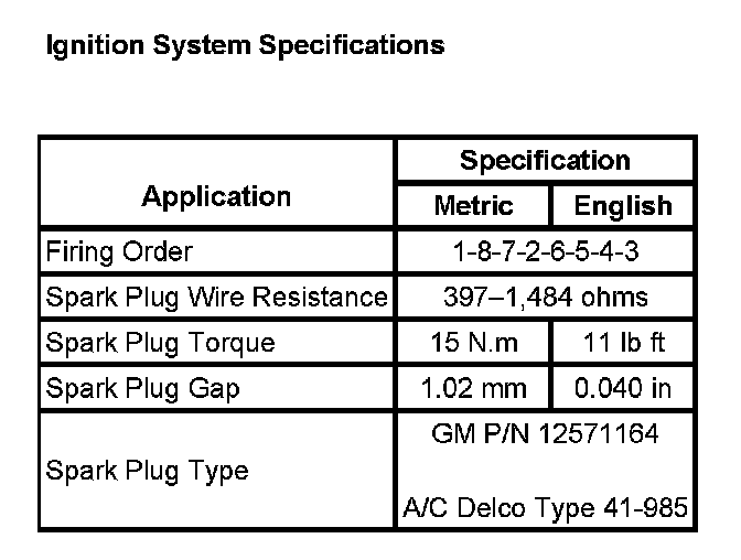 Ignition System Specifications: