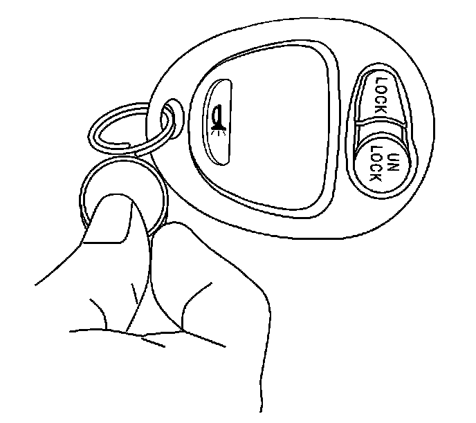 1. Insert a small coin between the two halves of the transmitter case at the slot provided near the key ring hole.